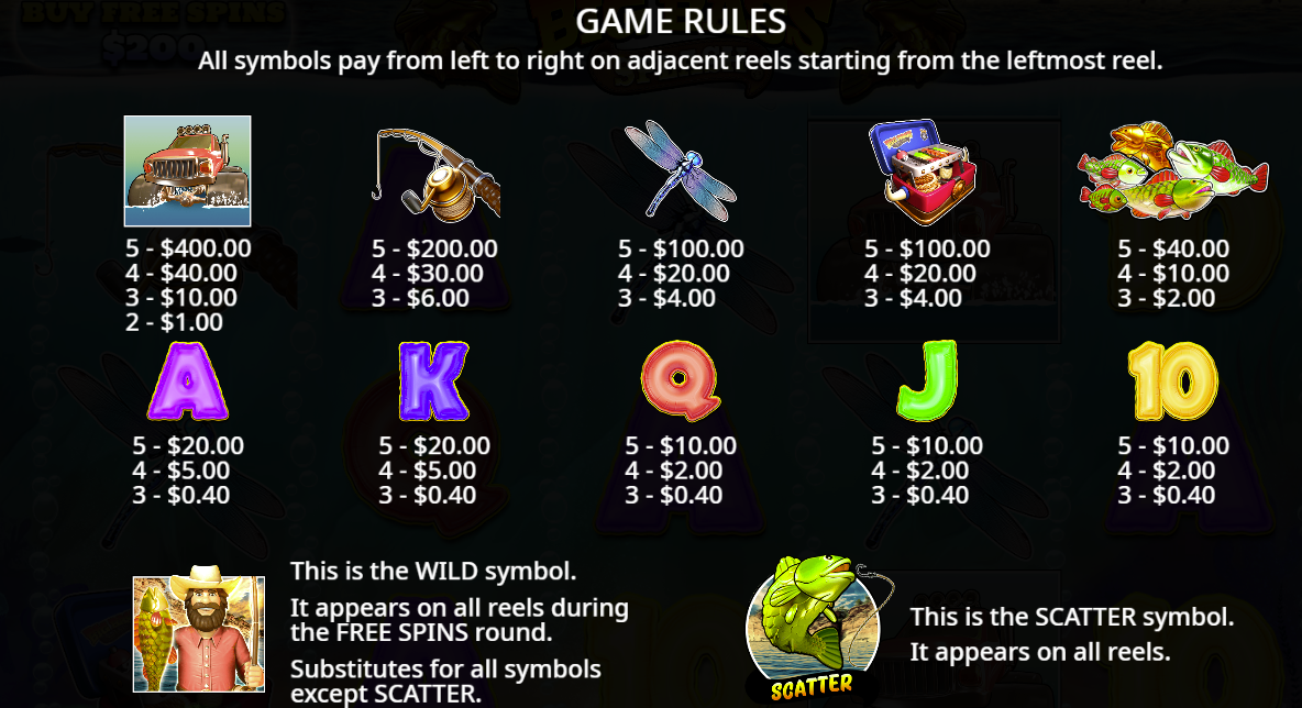 - Persistent Fisherman Wild: During free spins, Fisherman Wild remains fixed on reel 5 ensuring guaranteed collections